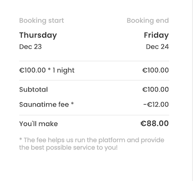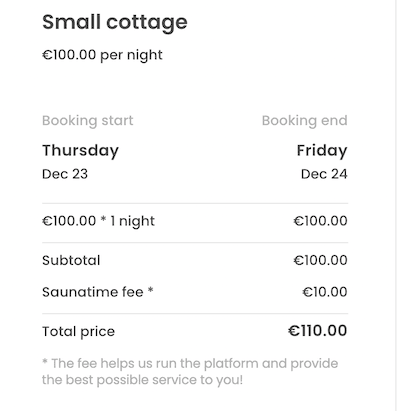 const lineItems = [booking, providerCommission, customerCommission];For a 100 EUR listing, this would result in a 110 EUR payin for the customer and a 88 EUR payout for the provider. The marketplace would receive 22 EUR minus Stripe fees.